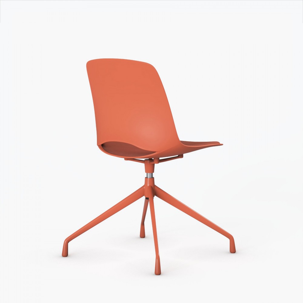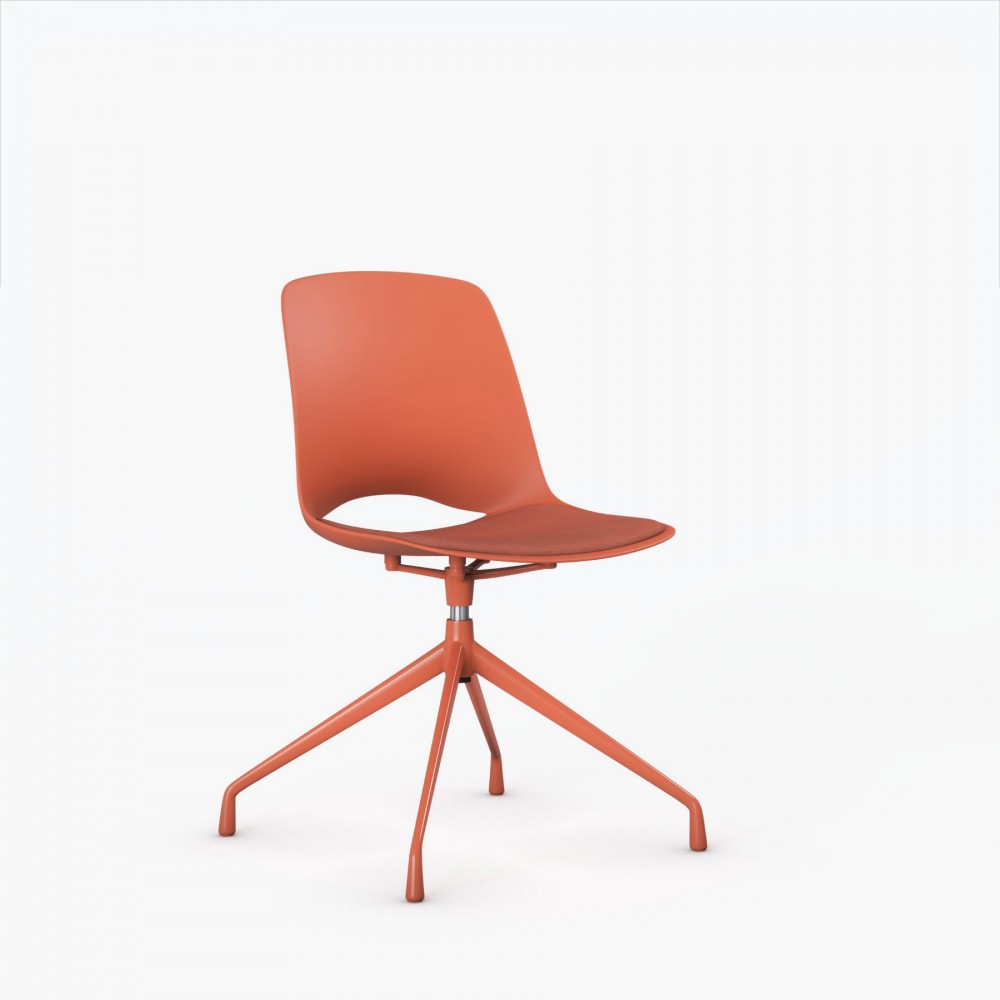 Elke stoel is voorzien van een stabiele piramidevoet van staal, afgewerkt in dezelfde kleur als de zitting voor een harmonieus totaalbeeld. Deze solide basis biedt niet alleen betrouwbaarheid, maar maakt ook een soepele 360° draaibeweging mogelijk. Dit verhoogt het gebruiksgemak en maakt de stoel flexibel inzetbaar in dynamische omgevingen.